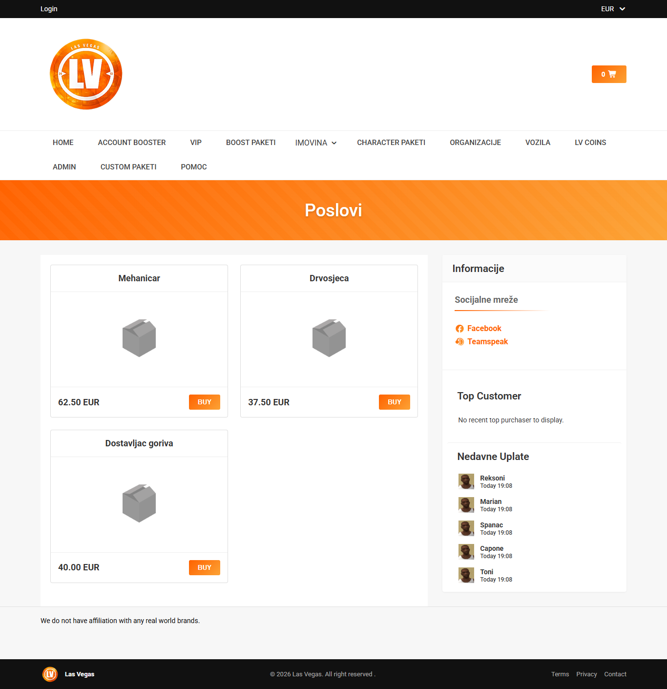 Započeo sam izradu webshopa za Las Vegas SA:MP server...
